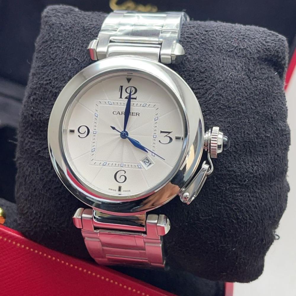ساعة رجالية فاخرة بتصميم كارتير طبق الأصل، مصنوعة من الستانلس ستيل عالي الجودة، تجمع بين الأناقة والفخامة لتمنحك مظهرًا استثنائيًا يناسب كافة المناسبات.