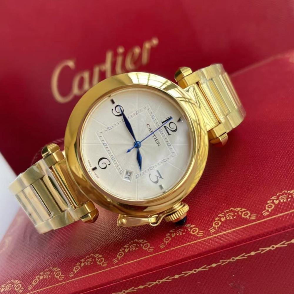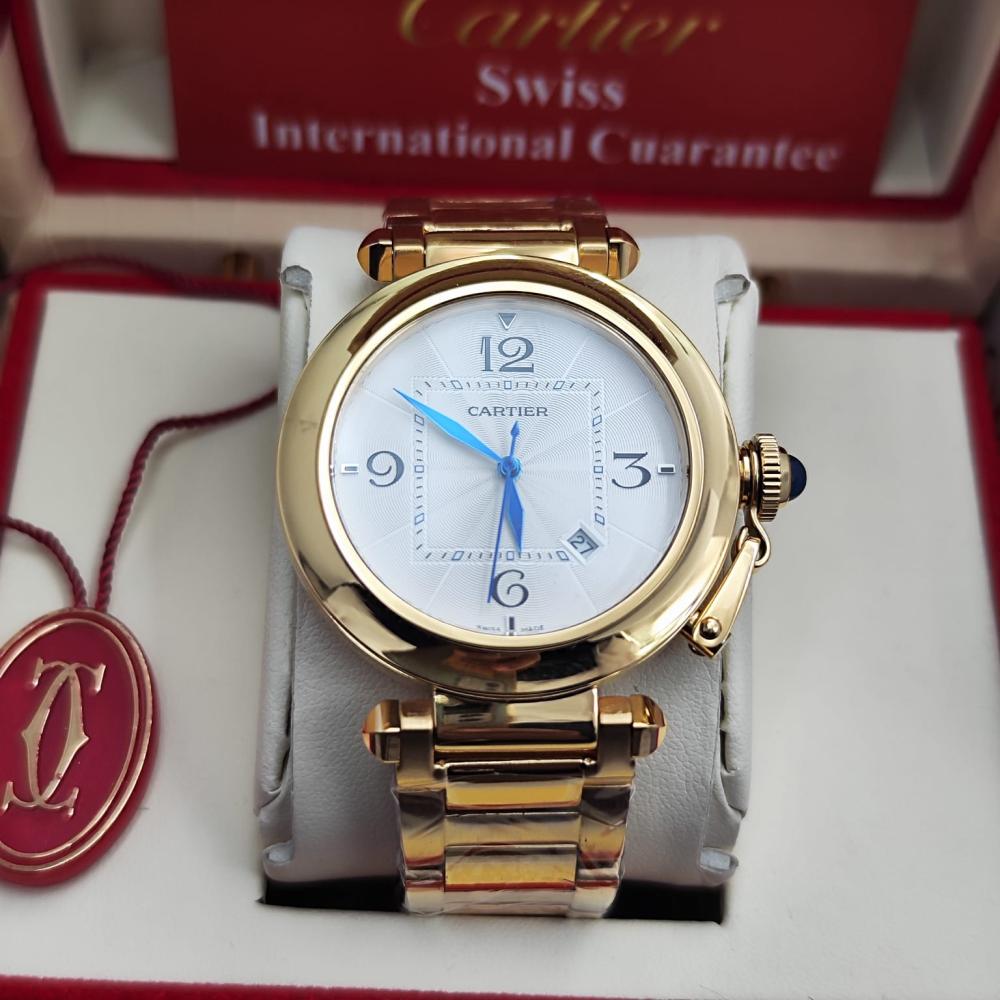 ساعة رجالية فاخرة بتصميم كارتير طبق الأصل، مصنوعة من الستانلس ستيل عالي الجودة، تجمع بين الأناقة والفخامة لتمنحك مظهرًا استثنائيًا يناسب كافة المناسبات.