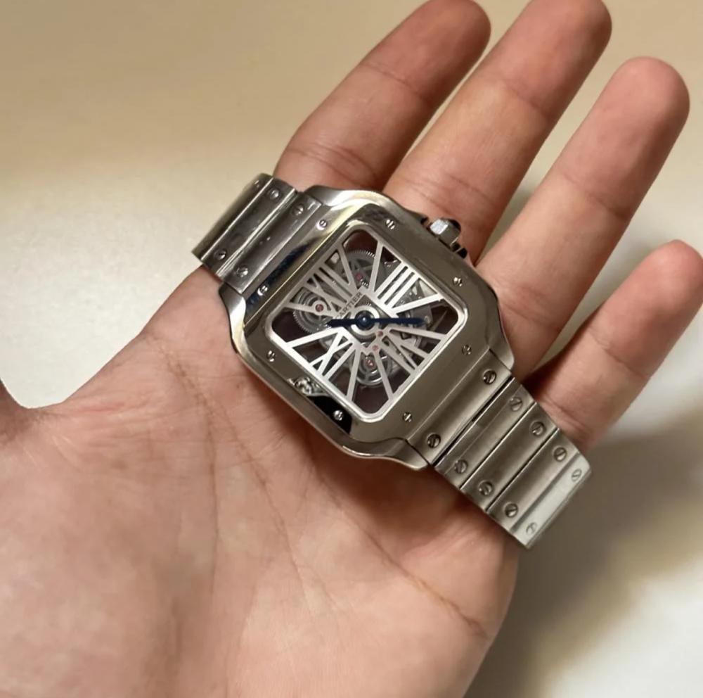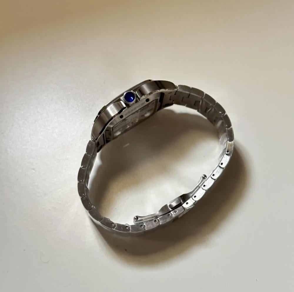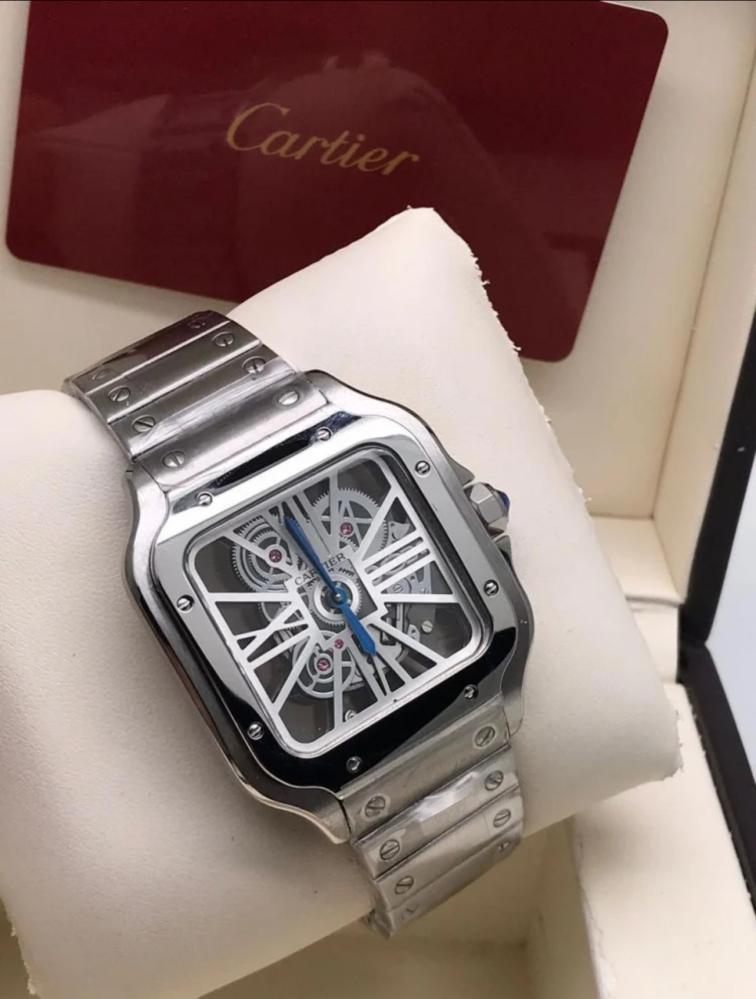 ساعة رجالية فاخرة بتصميم كارتير طبق الأصل، مصنوعة من الستانلس ستيل وحزام سير استل ستيل عالي الجودة، تجمع بين الأناقة والفخامة لتمنحك مظهرًا استثنائيًا يناسب كافة المناسبات.