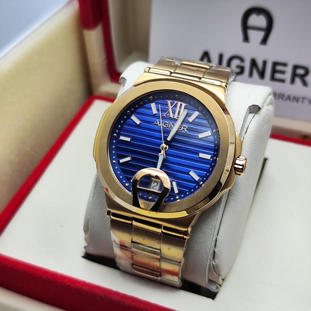 ساعة اقنر رجالي ذهبي ميناء ازرق